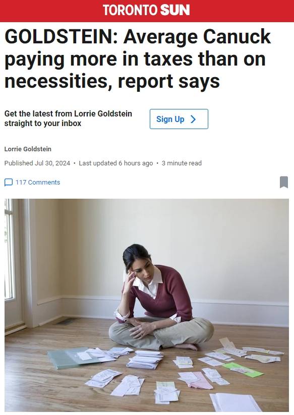 The Fraser Institute's annual study reminds us that the total amount of taxes paid by Canadians far exceeds income taxes, and that affordability is not just about the rising cost of living, as evidenced by inflation and the rising cost of housing, food and shelter.