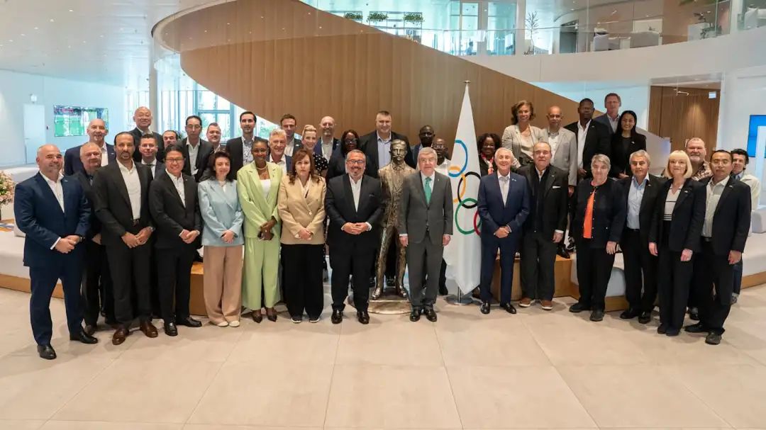 © IOC / Greg Martin - The IOC President with the members of the FIVB Board. This week, IOC President Thomas Bach met with FIVB President Fabio Azevedo and his predecessor Ary Graça. President Bach congratulated volleyball on its excellent development both on and off the court and emphasized the good partnership between the two organizations. Subsequently, the President welcomed the members of the FIVB Council who were meeting at the Olympic House. They emphasized the great success of the volleyball competitions at the 2024 Paris Olympics and the FIVB's strategic vision with the motto "United by Volleyball."