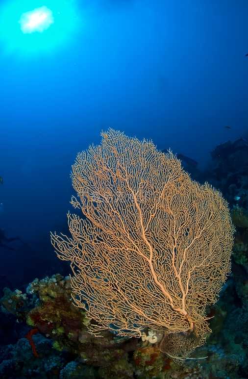 The defining feature of fan corals is their flat, broad branches that extend in delicate latticed patterns, resembling natural screens crafted by the sea. Each branch is studded with tiny polyps, their feathery tentacles swaying gently with the current like delicate plumes. This movement not only enhances their aesthetic appeal but also aids in capturing plankton, as the cilia-lined tentacles filter nutrients from the water. The corals’ color palette is a celebration of tropical vibrancy: deep reds, vivid oranges, sunny yellows, and rich purples dominate, with some specimens showcasing gradient hues or subtle fluorescent accents that glow under sunlight. Mature colonies can reach up to 1 meter in height, forming dense clusters that resemble ornate, underwater tapestries.
